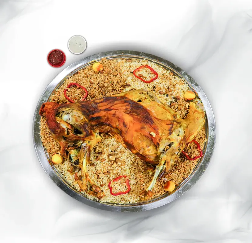 مندی - مدفون نصف گوسفند کامل با سه نوع برنج (مندی٫ زوربین٫ کبسه) سوپ مخصوص٫ ۲ نوع چتنی٫ نان ملوح٫ نوشابه و ۲ سلاد... Read More