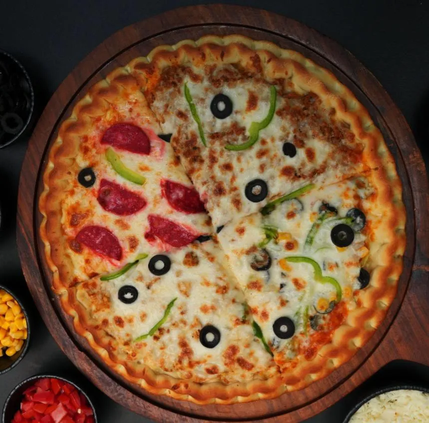 Beef, mutton, beef sausage cheese, onion, mashroom, capsicum