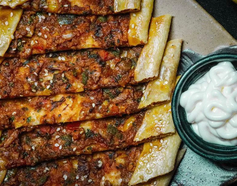 Sauce, cheese, pepperoni, black olives — ساس، پنیر، پپرونی، زیتون سیاه