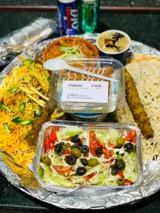 قابلی پلو٫ چکن بریانی٫ چکن هاندی٫ کباب کوبیده٫ ماست٫ نان خشک٫ سلاد٫ کیک شیری٫ نوشابه