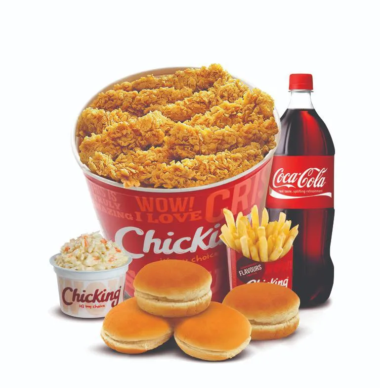 15 Chicken strips Coleslaw (L) Fries (L) 4 buns Cola 1.5L