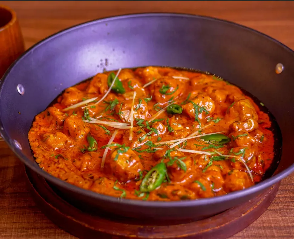 Succulent chicken cooked slowly in a creamy tomato and yogurt-based sauce with aromatic spices, delivering a rich and flavorful dish. Allergen note: Contains dairy (yogurt, cream); may cause allerg... Read More