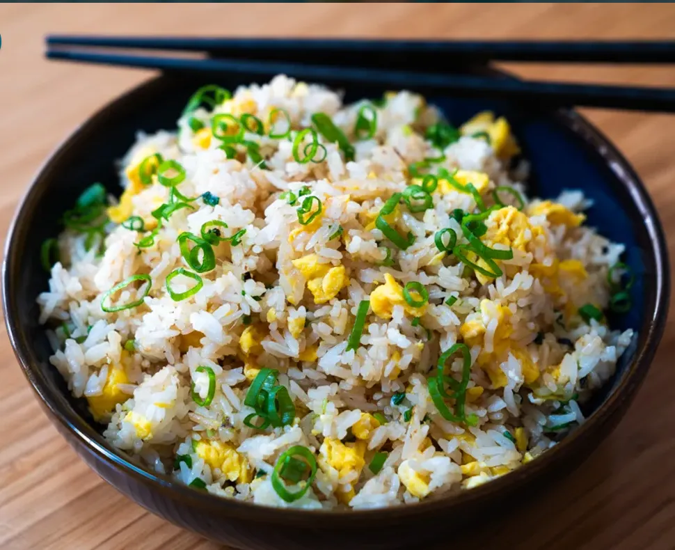 Fluffy fried rice stir-fried with scrambled eggs and fresh vegetables, lightly seasoned for a simple and delicious taste. Allergen note: Contains eggs; may cause allergies