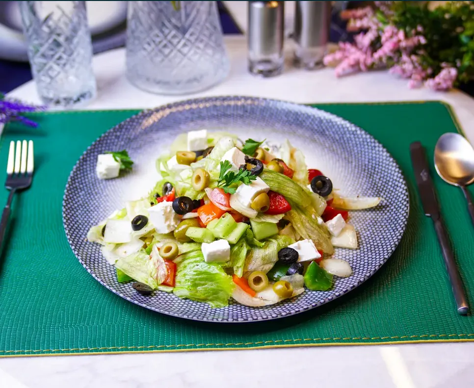 A refreshing salad made with cucumber, tomatos, red onion, olives and feta cheese dressed with olive oil and herbs for a tangy mediteranian flavor. Allergen note: Contains diary (Feta Cheese)... Read More