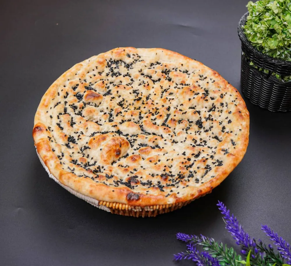 Traditional Afghan bread sprinkled with black nigella seeds, baked to golden perfection in a tandoor. Soft inside and slightly crisp outside, perfect with curries, kebabs, and rice dishes.