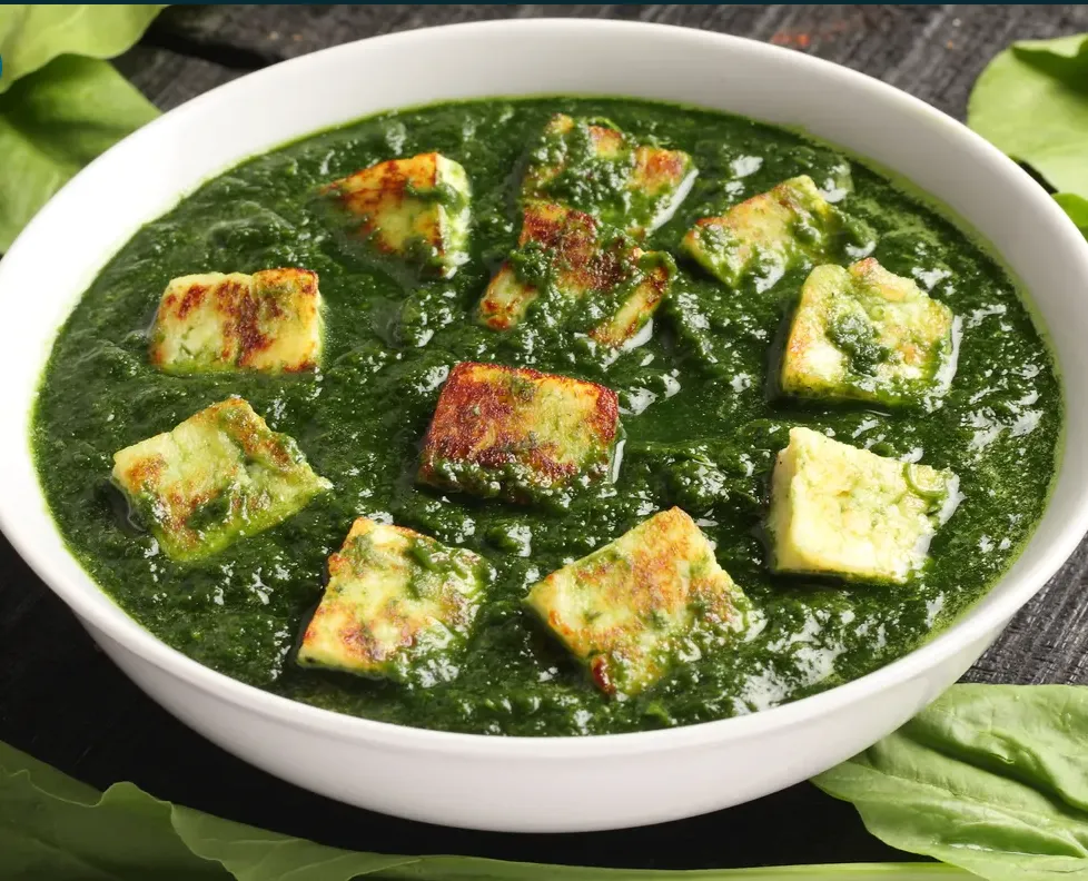 Soft cubes of paneer cooked with fresh spinach and aromatic spices, creating a creamy and flavorful vegetarian delight. Allergen note: Contains dairy; may cause allergies