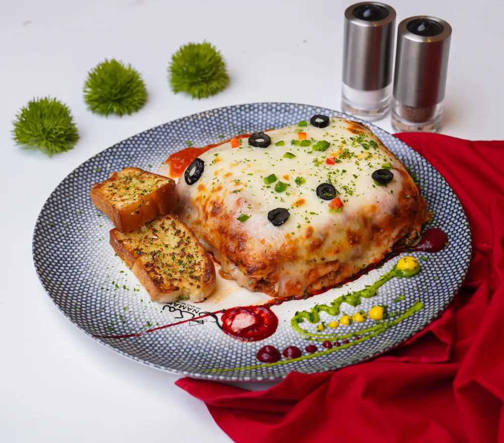 Layers of pasta sheets, rich Bolognese sauce, béchamel, and melted cheese, baked to a golden perfection for a hearty Italian classic. Allergen note: Contains gluten, dairy, and meat; may cau... Read More