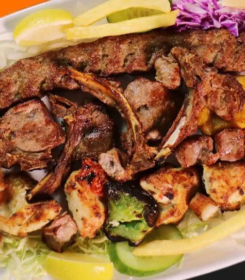 ( Lamb Pieces Served With Salad And Fresh Bread )